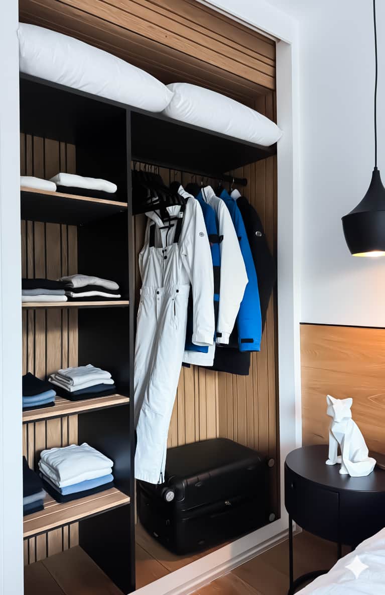 Enjoy a modern and functional storage space with the built-in dressing area in the master bedroom. Designed to make your stay easier, it offers multiple compartments to keep your belongings organized, along with a practical wardrobe for your ski gear and mountain wear.