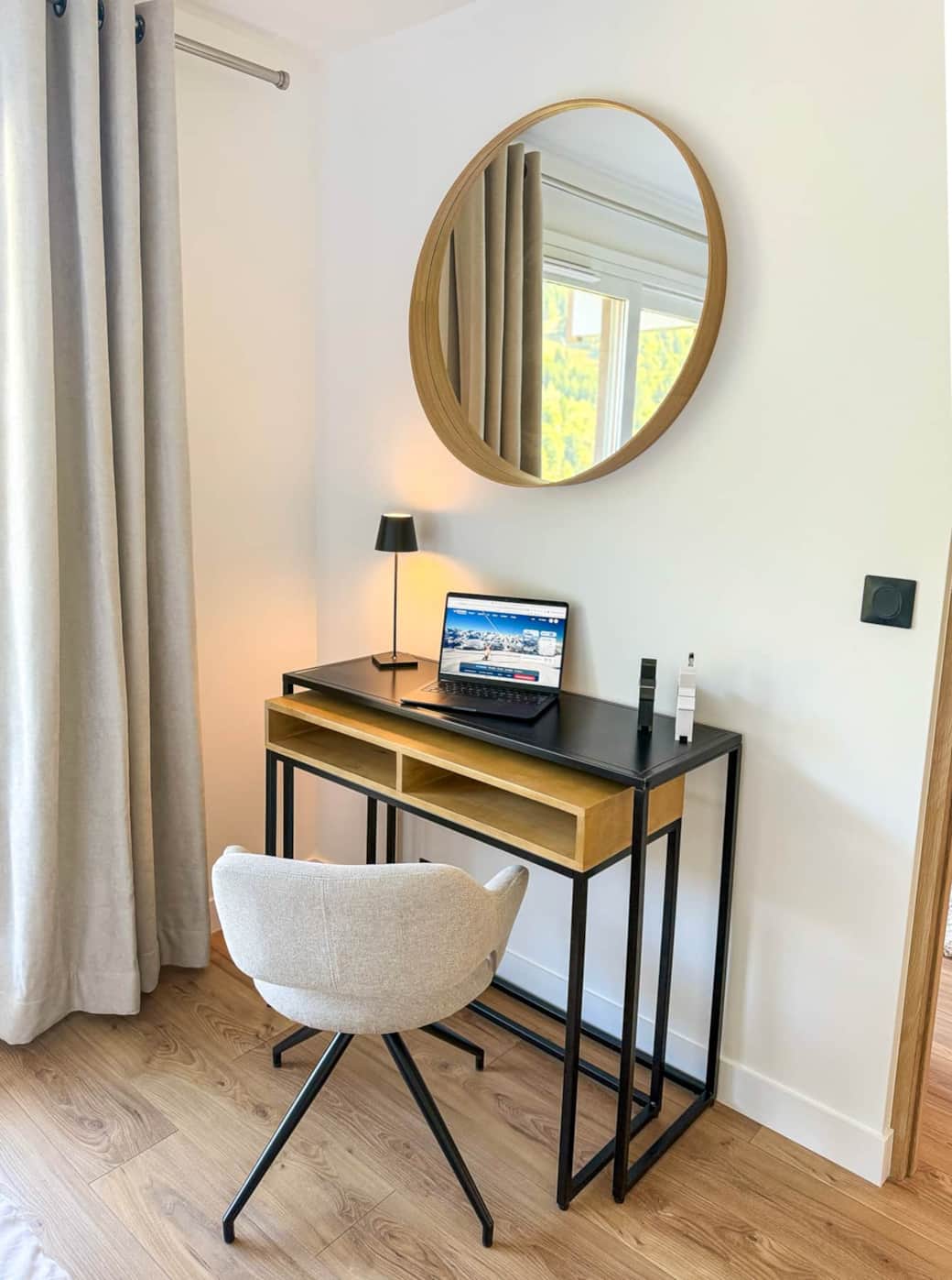 To complement the master bedroom, the apartment offers a perfectly designed workspace — ideal for remote working or staying connected during your holidays in Méribel.